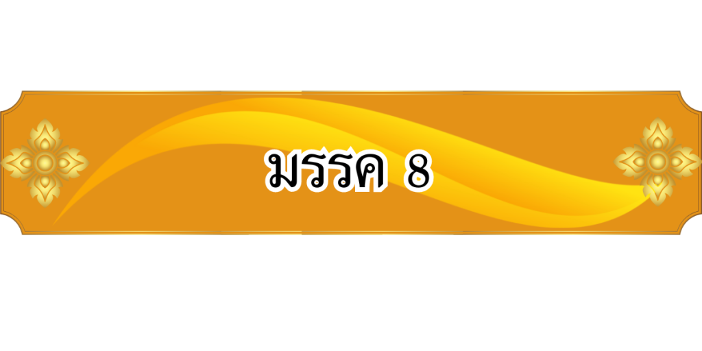 สมเด็จพระผู้มีพระภาคสัมมาสัมพุทธเจ้าประทานอรรถาธิบายว่า มรรคมีองค์ 8 ประการนั้น ประกอบด้วย 1. สัมมาทิฏฐิ 2. สัมมาสังกัปปะ 3. สัมมาวาจา 4. สัมมากัมมันตะ 5. สัมมาอาชีวะ 6. สัมมาวายามะ 7. สัมมาสติ 8. สัมมาสมาธิ