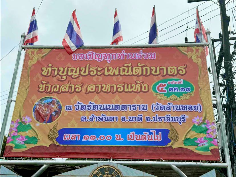 ขอเชิญร่วมทำบุญประเพณีตักบาตรข้าวสาร อาหารแห้ง ในวันอาทิตย์ที่ 5 ตค. 68. นี้ ตั้งแต่เวลา 13.00 น. เป็นต้นไป